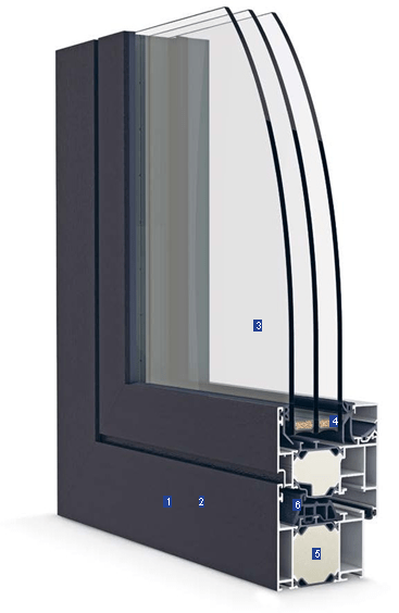 Vícekomorové středové vulkanizované těsnění přispívá k vysokým hodnotám tepelné izolace.