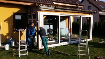 - Speciální prahové řešení umožňují bezbariérový přístup na terasu. Na výběr je rovný nebo zešikmený práh.
